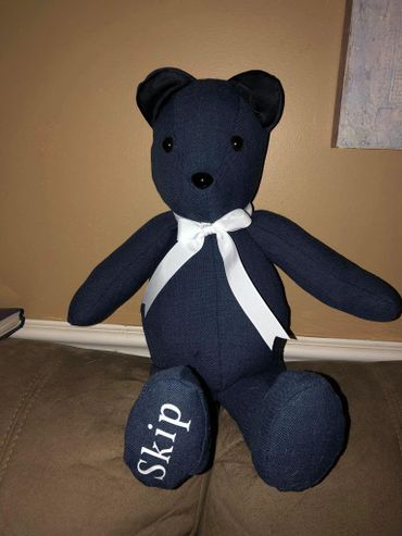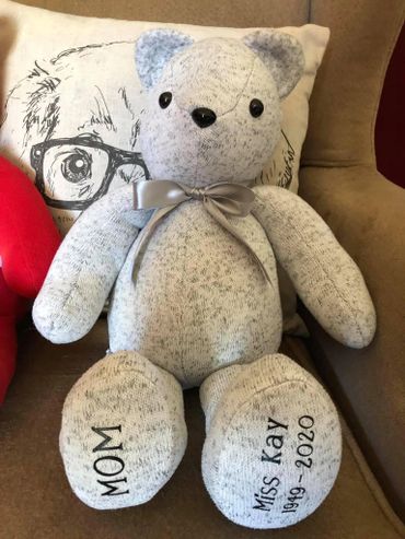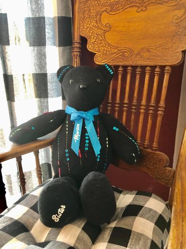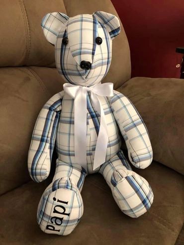 At Loving Memories and Designs, we pride ourselves on offering a very special custom bear for each customer. Each bear is fully customized from your loved ones clothing and names and dates can be added. Special requests always welcomed.